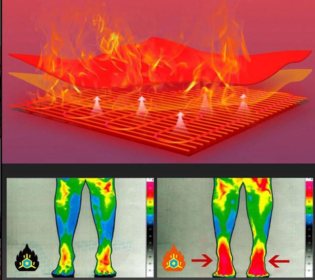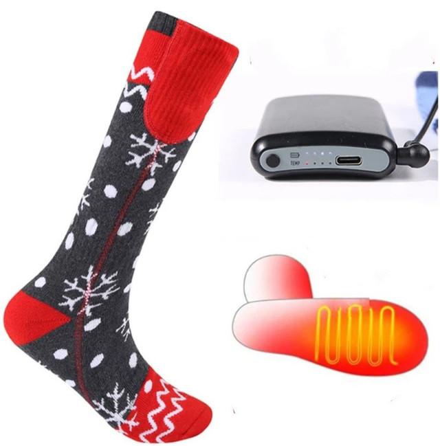 Шкарпетки з підігрівом виготовлені з абсорбуючого, дихаючого, швидковисихаючого, еластичного потовщеного матеріалу з використанням електричних модулів. Посилена п’ята й носок із м’якою підкладкою допомагають зберегти тепло. Незалежно від розміру ноги шкарпетки зручно лягають на ногу і виконують свої функції. Крім цього, шкарпетки мають відмінності відповідно до лівої та правої ноги, що робить їх зручнішими. Тепло надходить від дуже тонких з'єднань так, що ви не відчуєте жодних дротів та незручностей. Поверхнева температура становить від 40°C до 50°C. Найкращий спосіб, зігріти ноги ― це скористатися шкарпетками з підігрівом.